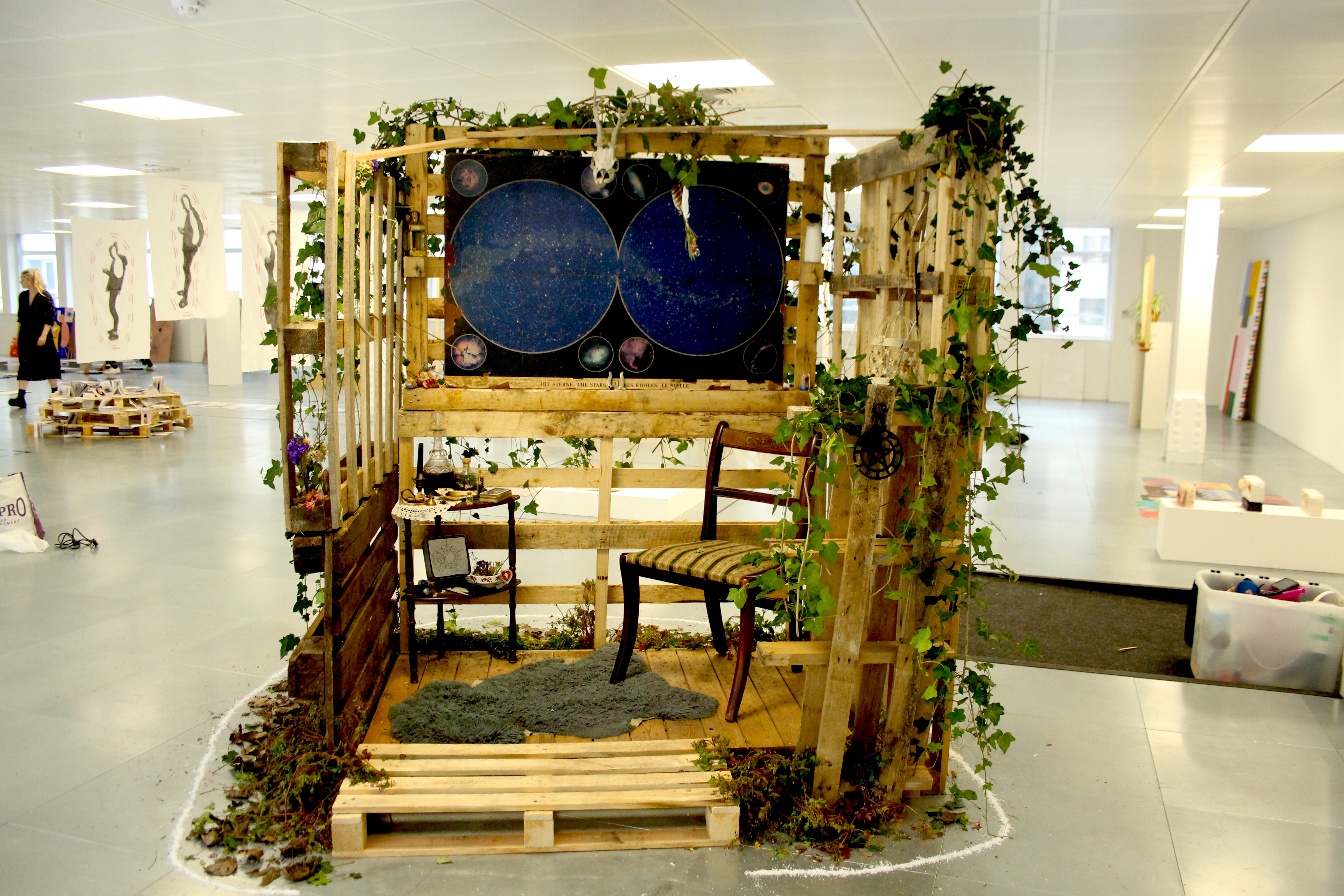 built as a physical spell, an ode to the divine residing in nature, this temporary space was created as an offering of care to those willing to receive it. a witch’s power is vital to life on earth, now and forever. it manifests itself in anyone who engages in purposeful ritual and sacred acts, in challenging establishments, battling oppressions, or simply has an interest in the raw, powerful possibilities of unrestricted human energies